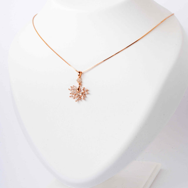 This exquisite Silver Rose Gold Pendant is designed in the graceful form of a peacock, with attention to detail in capturing the beauty of its feathers. The intricate design extends to include the distinctive shape of the peacock's elegant plumage. The rose gold accents add warmth and sophistication to this stunning accessory ensemble, making it a unique and eye-catching addition to any collection.