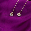 These unique earrings feature a delicate kite shape, with a portion beautifully studded with shimmering zircons.