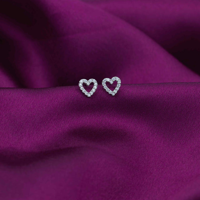 These elegant earrings feature a delicate heart outline crafted from sterling silver, beautifully accented with sparkling zircon stones